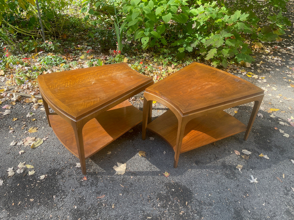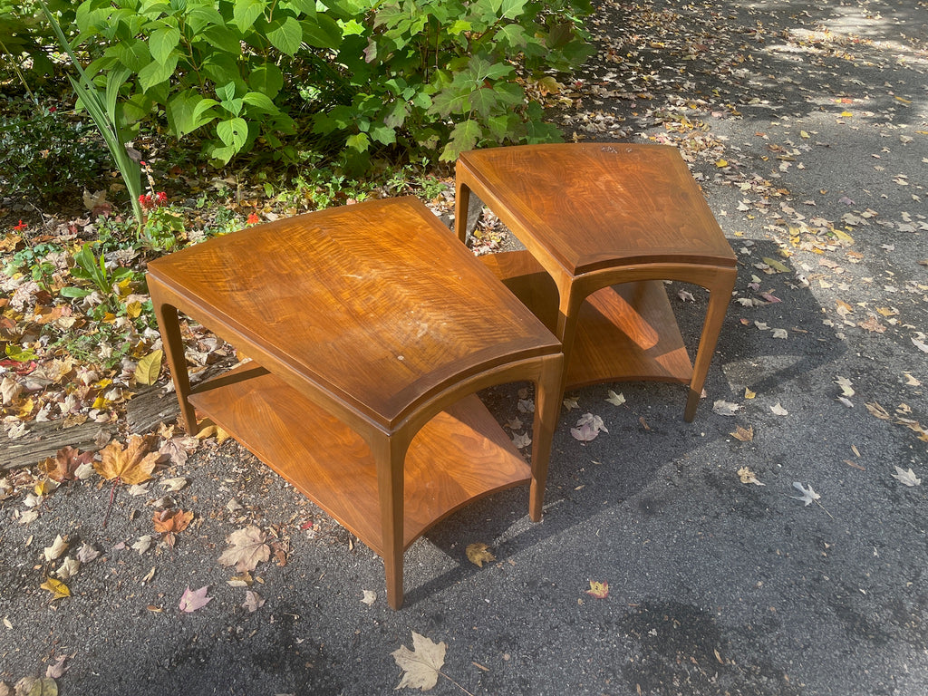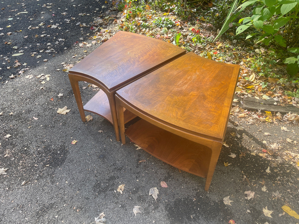 Rare set of Lane Rhythm Side tables with curved sides creating wedge shape tables.