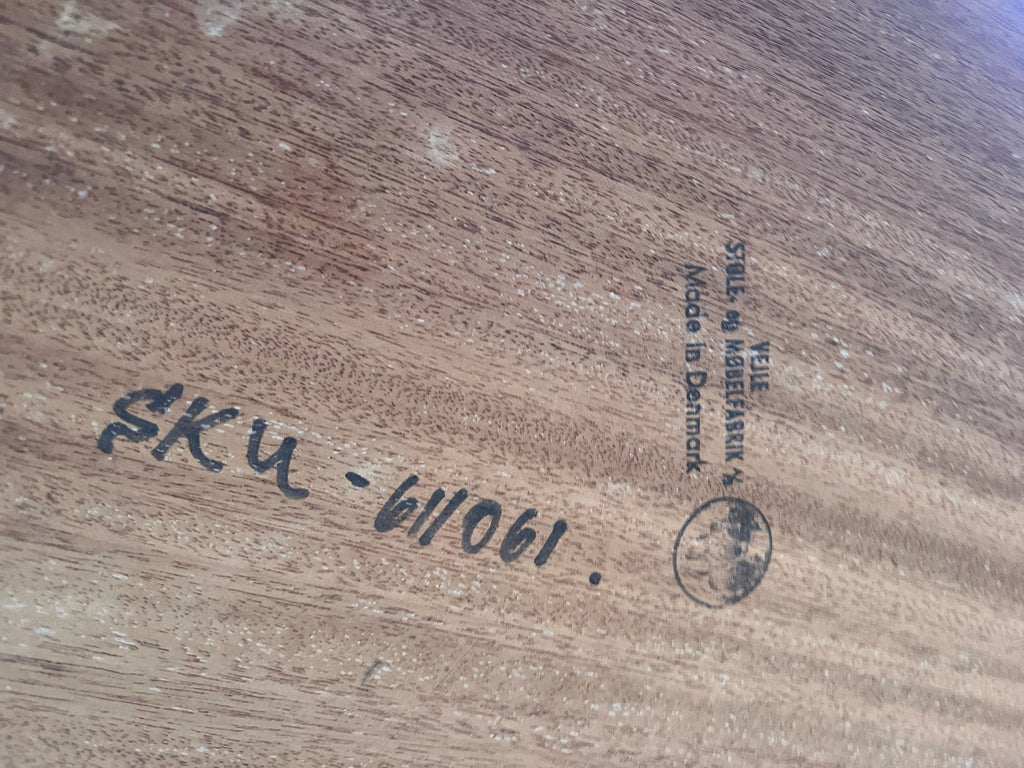 A pair of elegant teak wood rectangular Mid Century Modern side tables. Bear “made in Denmark” stamp.